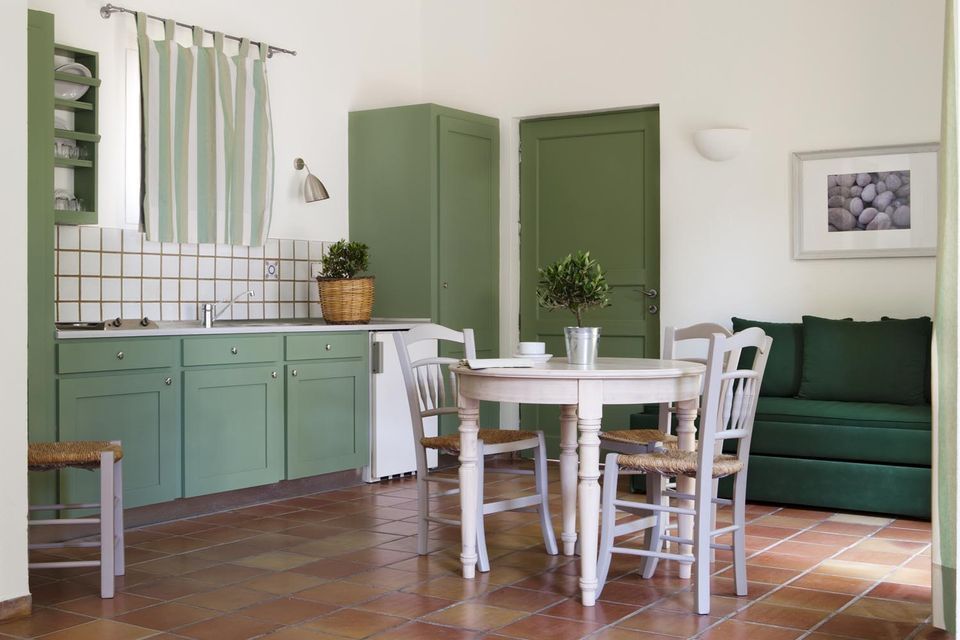 Nestled amidst the perfumed gardens the family apartments cover a cosy living space of 40 square meters. Charmingly appointed and furnished, the apartments feature one twin bedded room, a separate living room with two folding beds, a kitchenette where guests can cook their own meals, a bathroom and spacious furnished balconies with partial sea view of the Mirabello Bay.