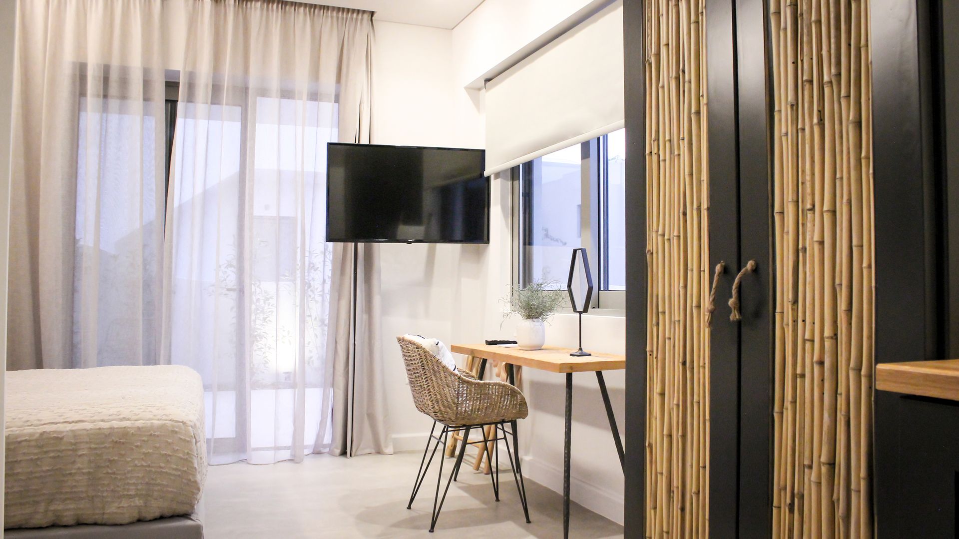 Bright and airy rooms that lean into local materials while executed in a sophisticated earthy palette. This double room featuring a sleeping area with double bed and a bathroom with shower and located on the ground floor.