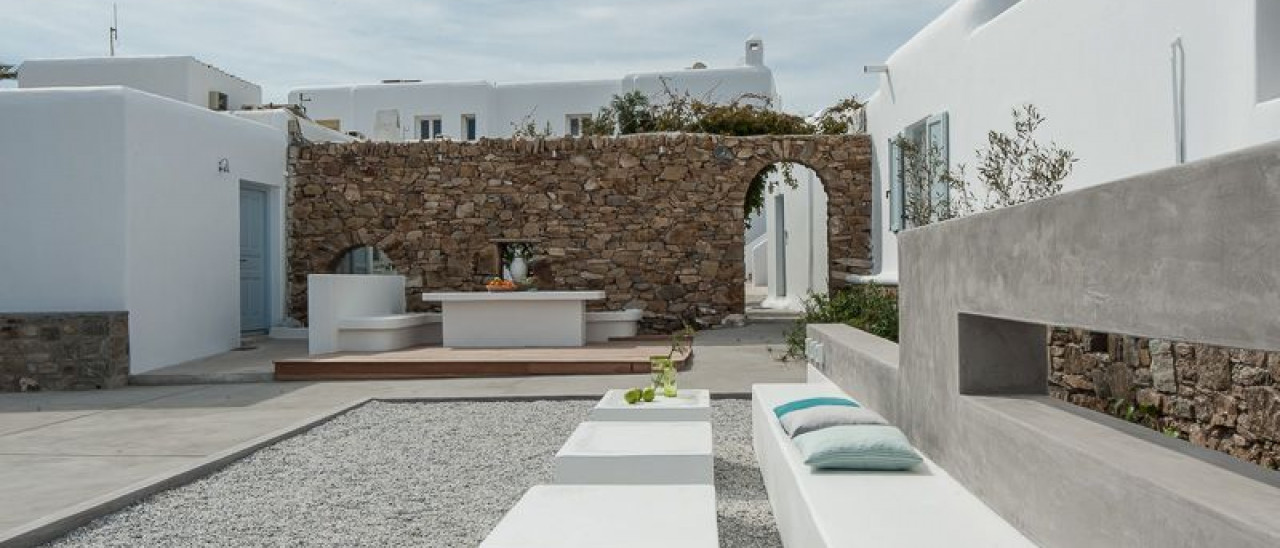 Follow the stone alleys of the hotel, discover these cozy 22 - 25 m² rooms among the beautiful green gardens of ‘ A Hotel Mykonos ‘.