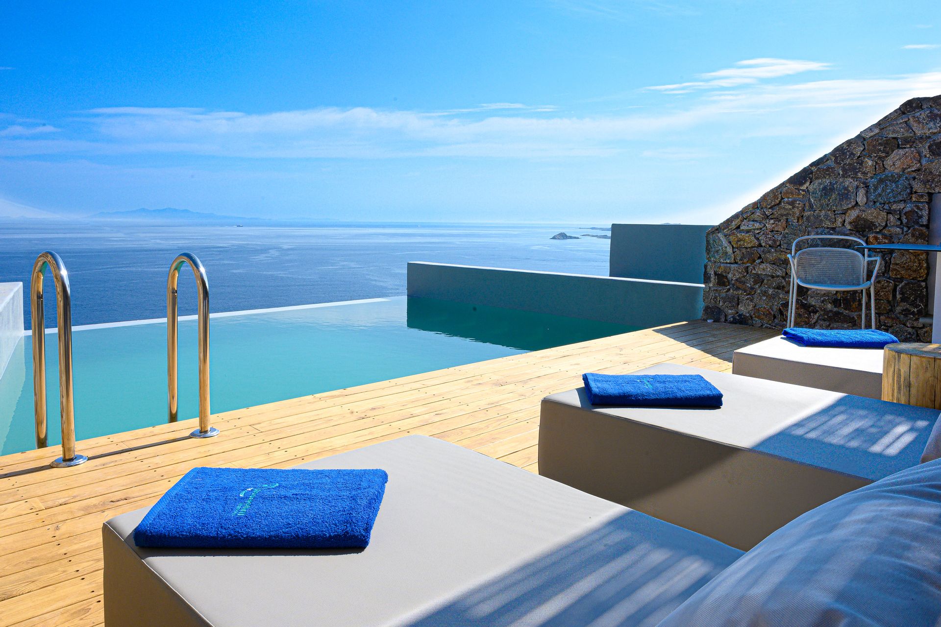 The Premium Suites of Alissachni Mykonos will turn into your luxurious heaven on the island. Situated at the upper level of the hotel, offer guests a unique combination of exceptional luxury accommodation and total relaxation. Cherishing beautiful views to the sea of Aegean, these spacious suites harmonically blend the traditional Mykonian architecture, with modern décor and high-end technology. Its wooden spaces and elegant details, satisfy the needs of the most discerning guests. The Premium Suite’s highlight is the private balcony with the private pool, where guests can spend hours of relaxation under the Aegean sun.