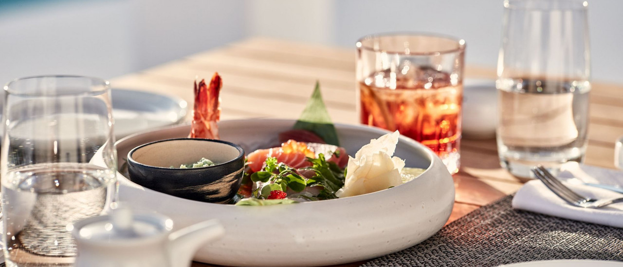 Superior Suite, spacious bedroom and living room, private veranda with lounge area, private pool with sea view, bathroom with jetted bathtub.
