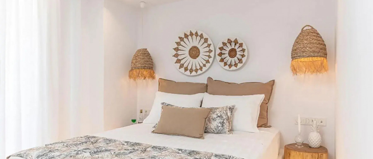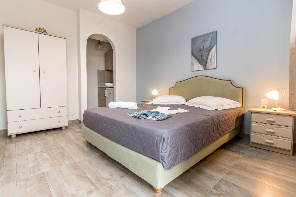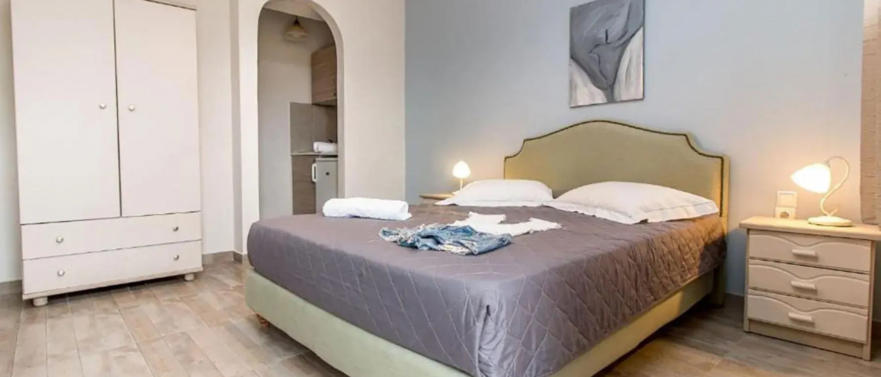 Experience the ultimate summer escape in a charming 18 sq.m. apartment. The space features a double bed and elegant décor that creates an atmosphere of relaxation and comfort.