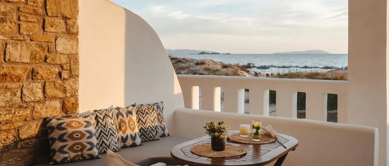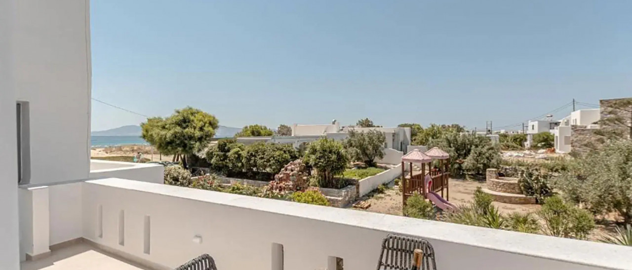 Enjoy your stay in a spacious 40 sq.m. apartment that accommodates up to 4 guests and combines comfort with unique views of the Aegean. The Grand Apartment features two separate bedrooms – one with a double bed that opens to a sea view balcony and the other with two single beds – making it an ideal choice for families or groups of friends.