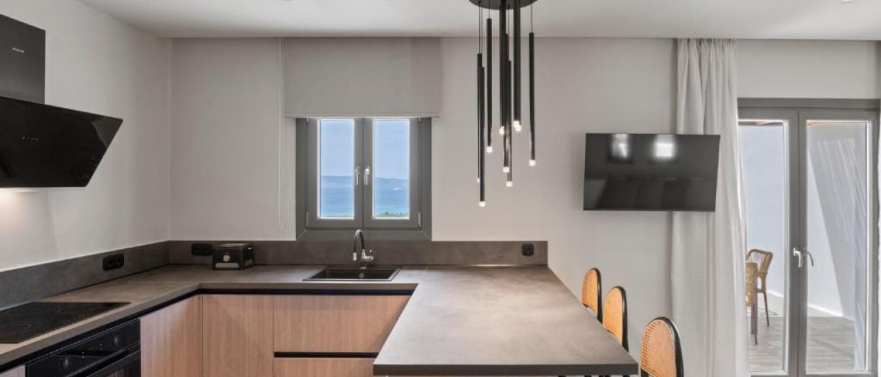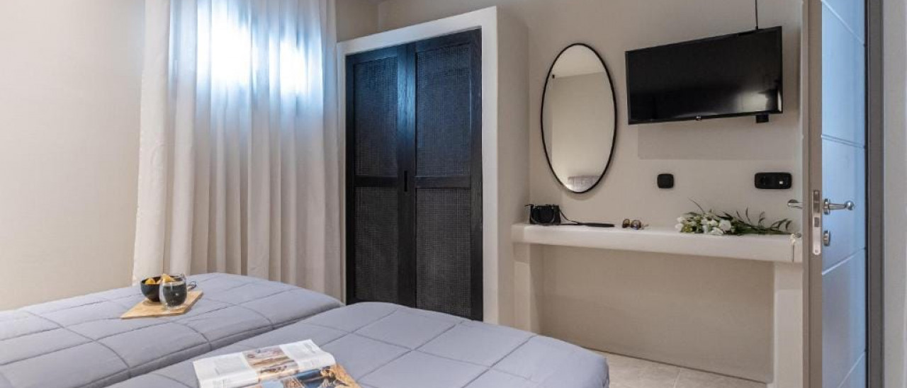 Enjoy a premium stay at this 100 m2 three-bedroom villa spannig in two levels, with two bathrooms, a wc and a private pool, part of the exclusive Lithia Villas complex near the famous Plaka Beach in Naxos. Perfect for families, couples, or friends, the villa offers three stylish bedrooms, a bright open-plan living area, and a fully equipped kitchen.