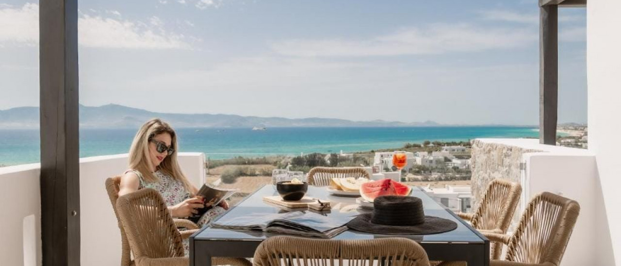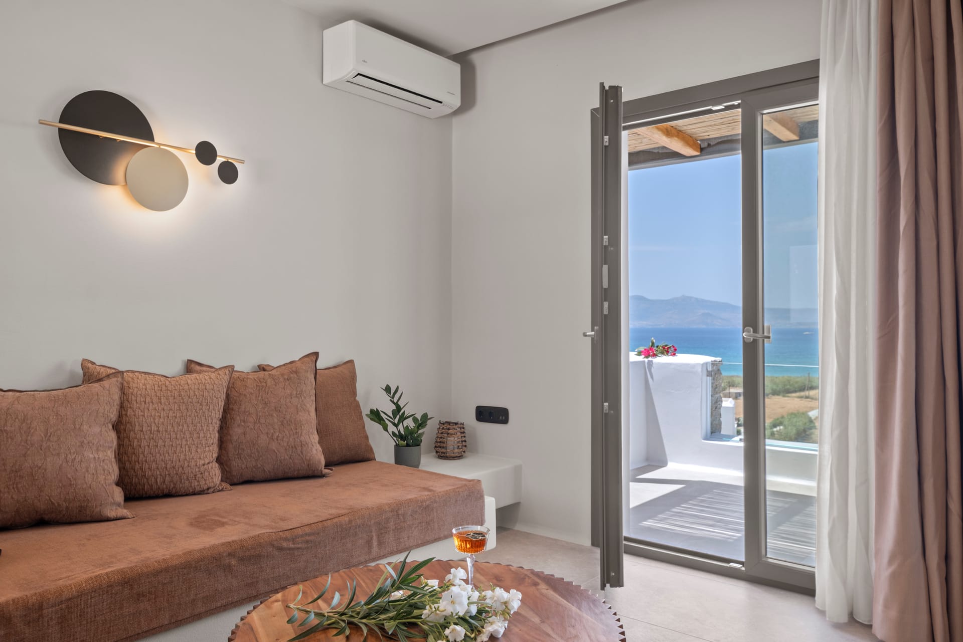 Located just a short walk from Plaka’s golden sands and crystal-clear waters, the villa offers easy access to beach bars, tavernas, and Naxos’ top attractions.